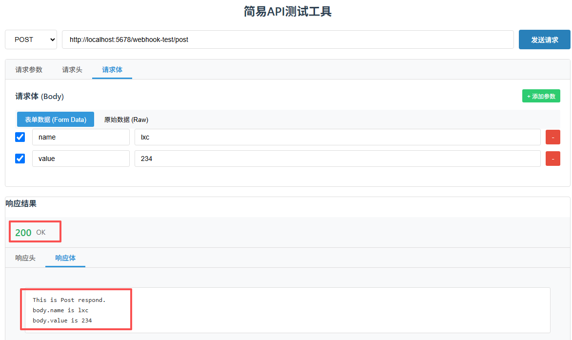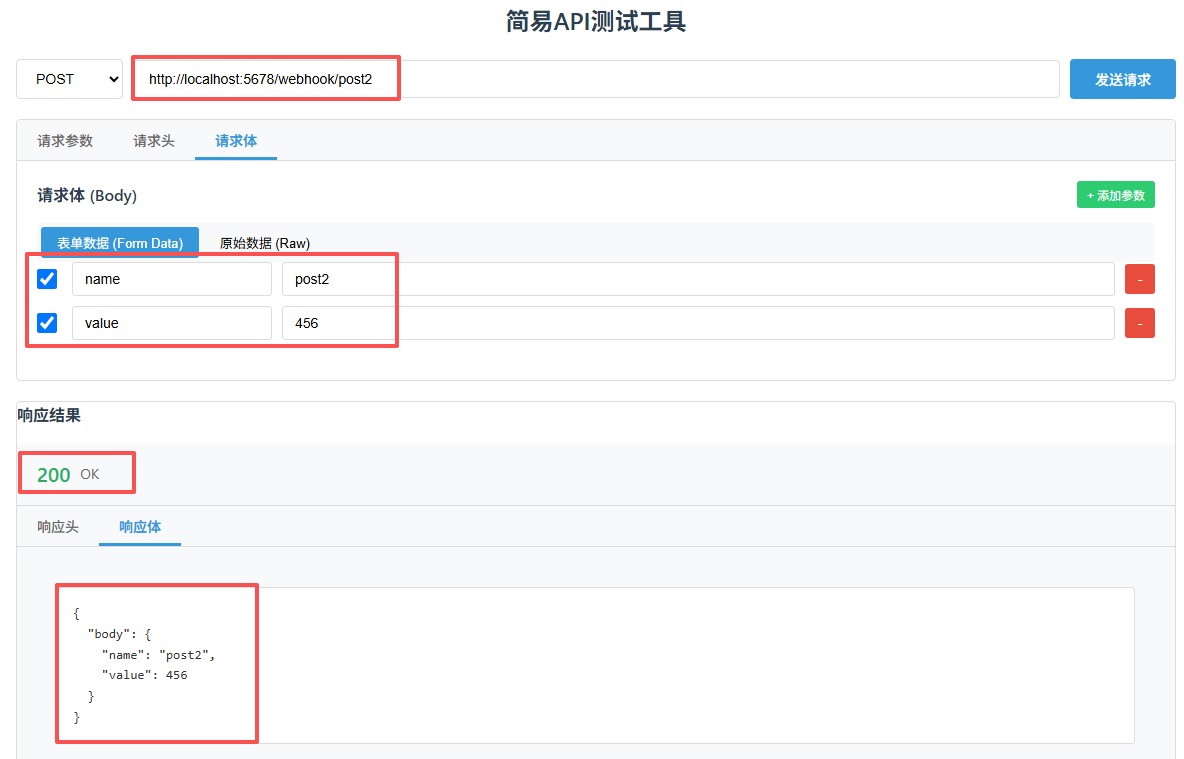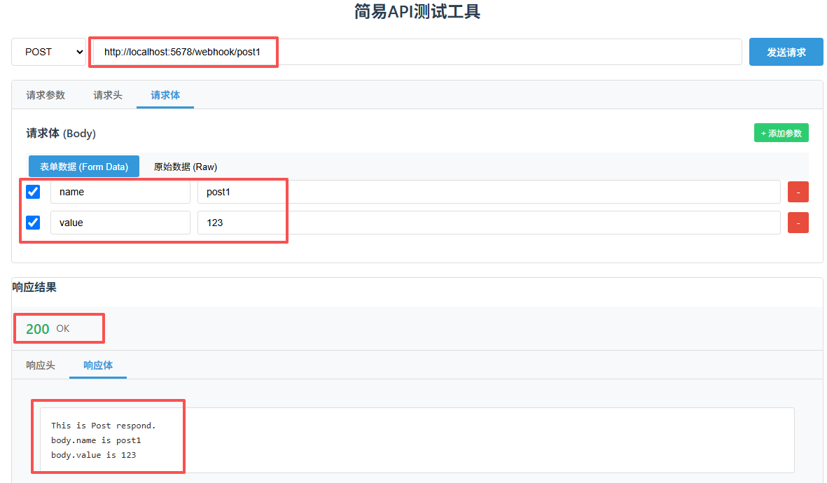 我们填写Response Body内容如上图,将收到的name和value返回。