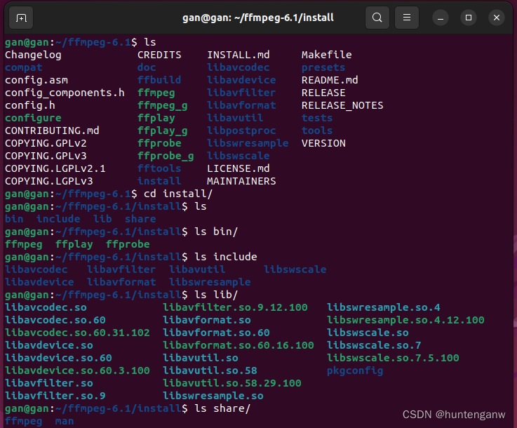 拿到这个install文件,实际就相当于一个ffmpeg的sdk了,利用它就开发自己的程序了。重点看看头文件中的函数,究竟给我们提供了怎样的接口函数、怎么使用就是难点了。