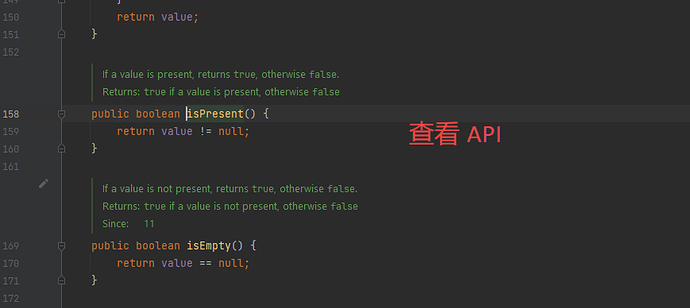 同样的,如果使用 Java 11 的话,你可以使用与 isPresent 相反的方法 isEmpty。