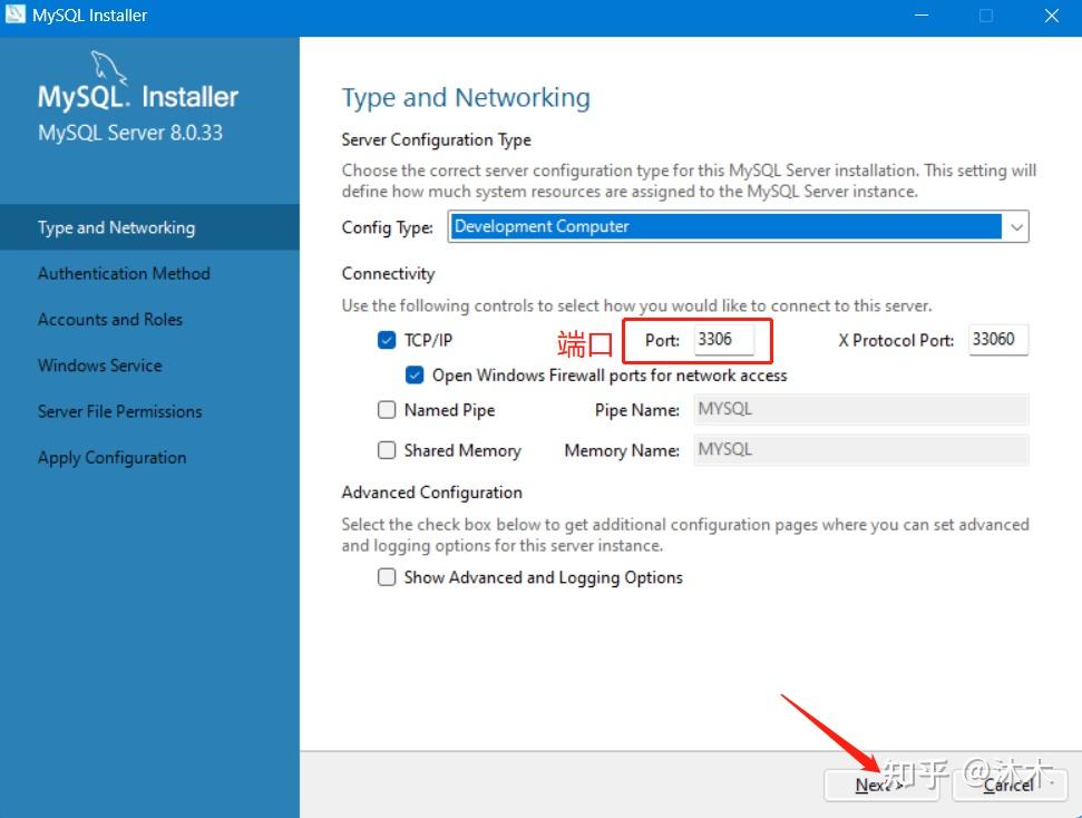 - MySQL的默认端口是3306,不用修改,然后点击“Next”
