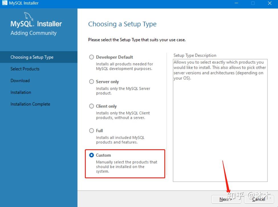 选择自己需要的类型去安装,我这里选择的是 Custom 自定义安装,选好后点击 Next。