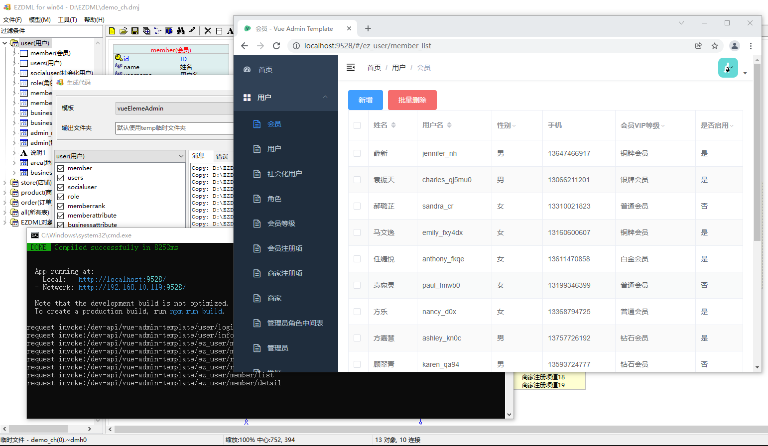 手把手教你用EZDML批量生成vue-element-admin前端页面代码 EZDML 3.26增加了vue-element-admin示例生成模板,本文就以它来讲解示范,如何从零开始用EZDML批量生成代码。