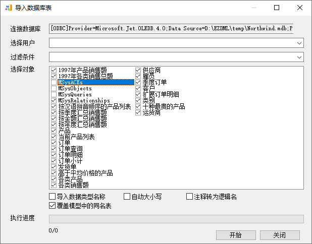 有些系统表(MSys开头的)无法导入,要取消勾选,不然会报错: