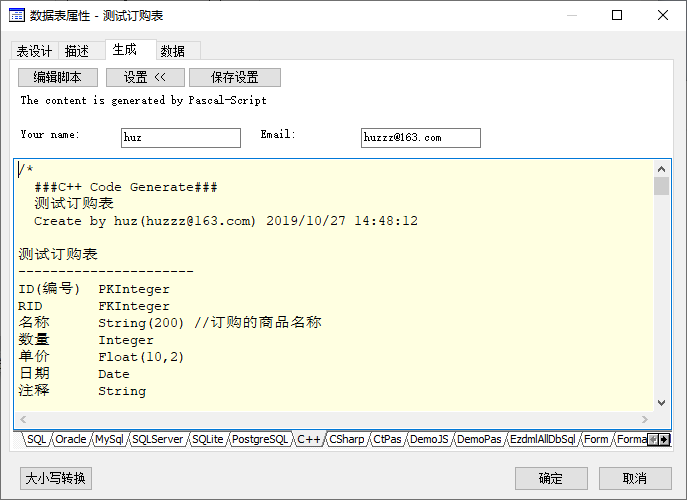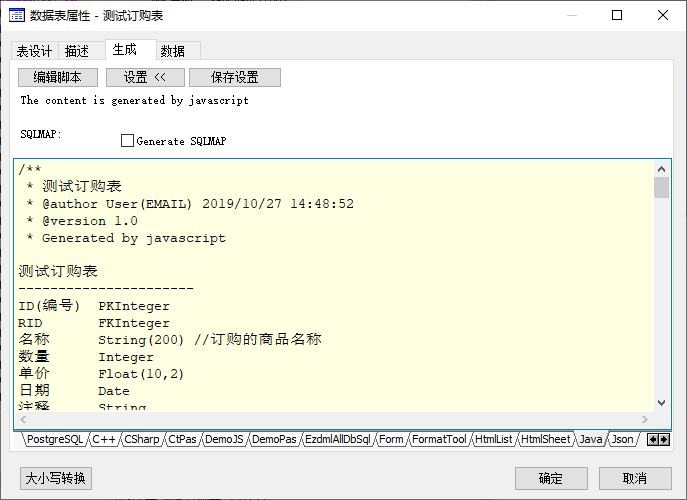 EZDML支持javascript和pascal脚本。这里以javascript为例。