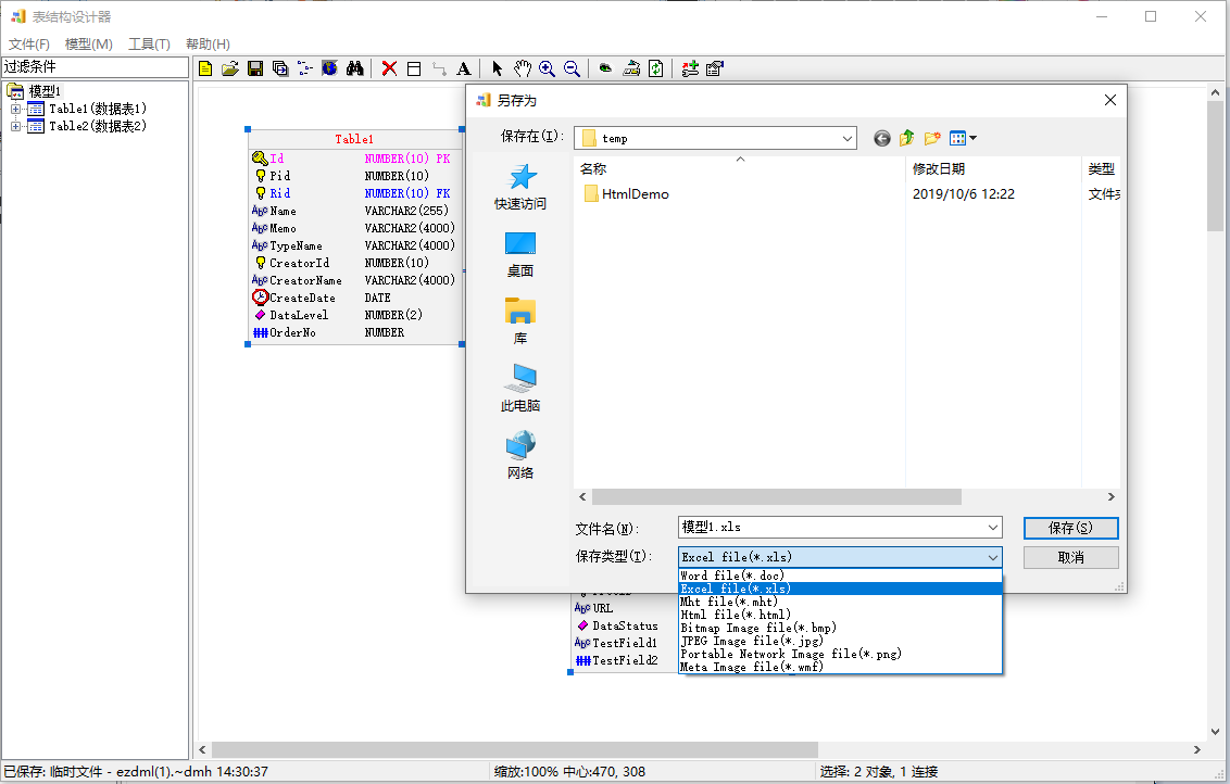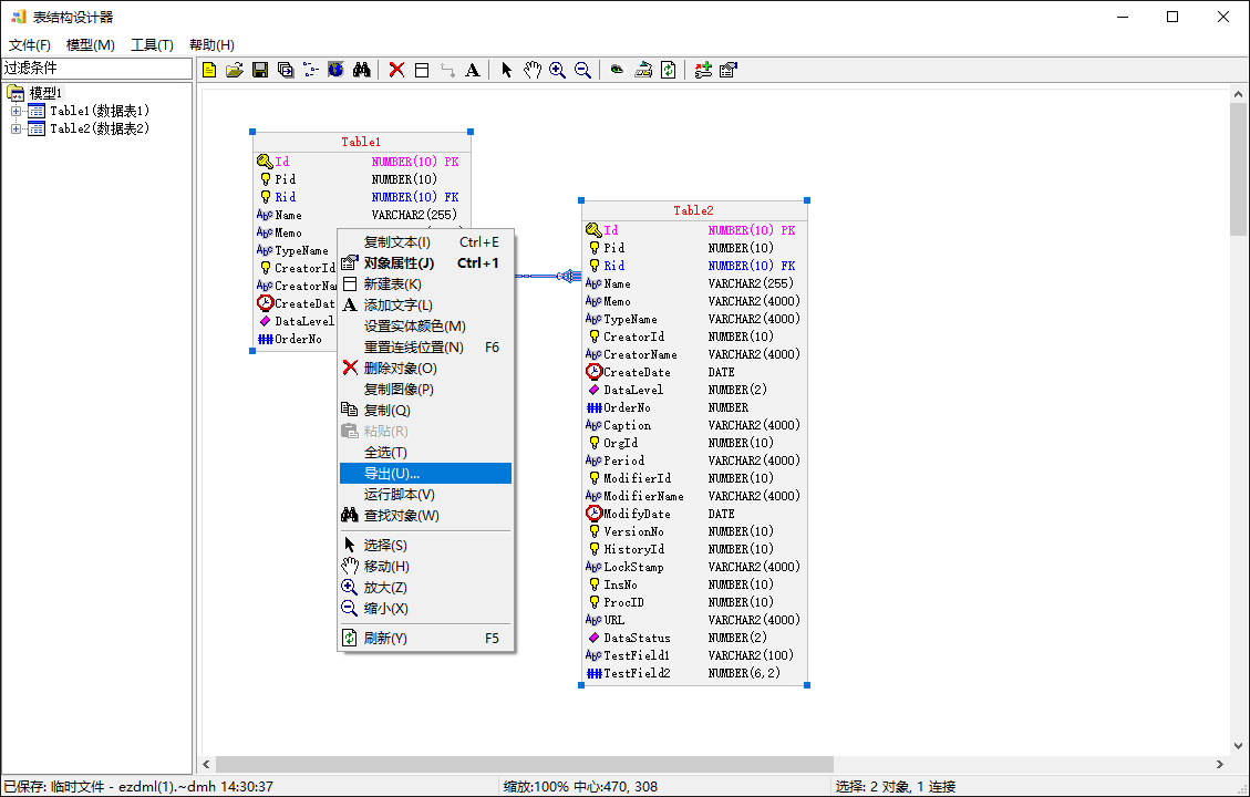 在模型图上选中一个或多个对象(不选则为全部),右键“导出”,系统提示指定文件路径和类型: