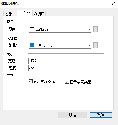 默认显示表对象的字段类型是按标准SQL定义,表对象的背景色是浅蓝,可执行“模型|模型选项”进行修改: