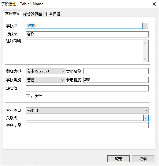 也可以双击一个字段,弹出字段属性界面来修改字段: