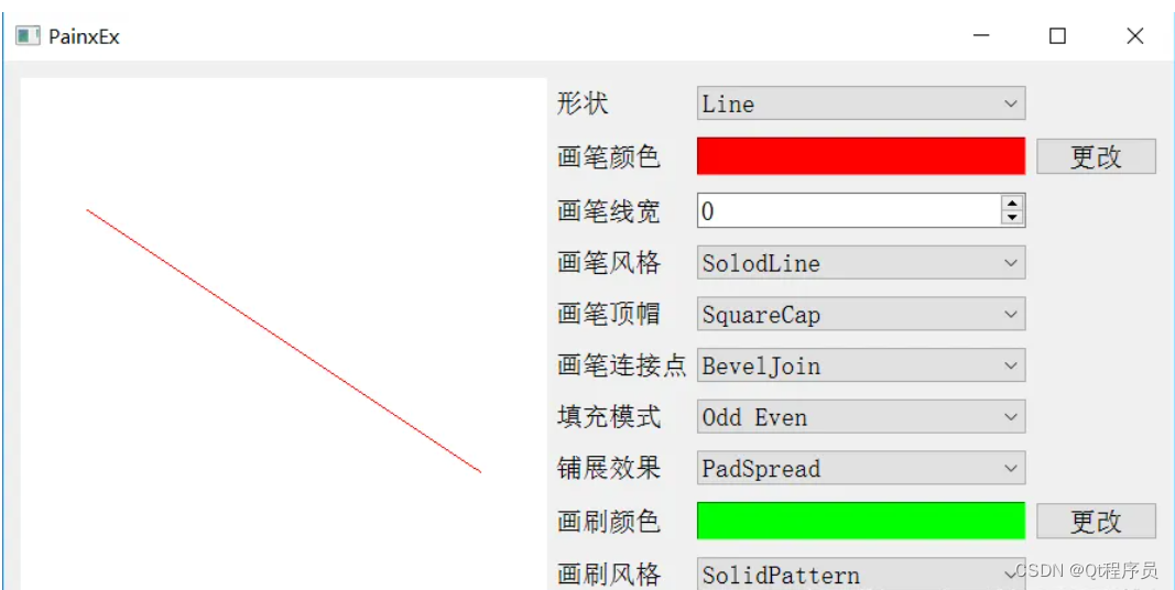 该文详细介绍了Qt中使用QPaintEvent进行图形绘制的方法,包括线、矩形、圆形等基本形状的绘制,以及设置画笔样式、颜色、填充规则等属性。同时,文章展示了如何创建一个可交互的用户界面来动态改变图形属性。