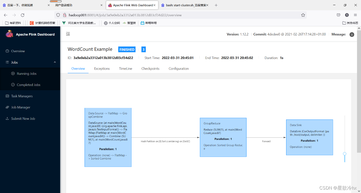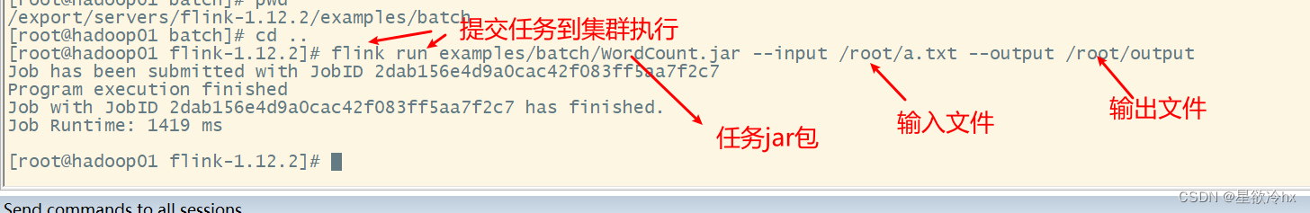 flink run examples/batch/WordCount.jar --input /root/a.txt --output /root/output