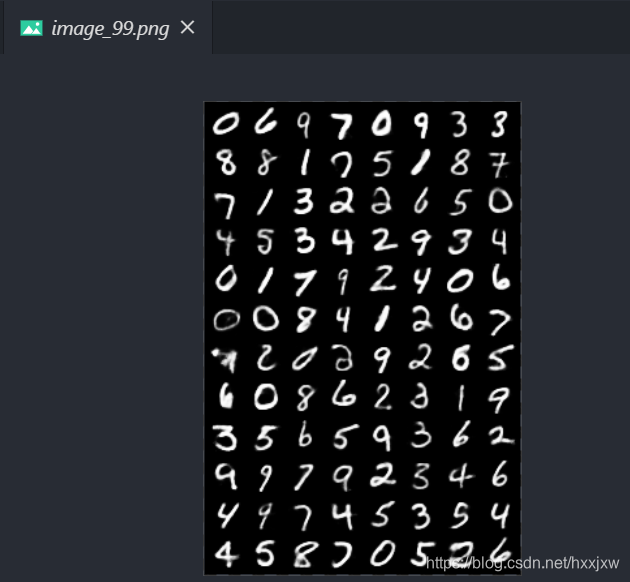 运行100个eopch之后,可以看出来结果比自动编码器清晰一点,本质上VAE就是在encoder的结果添加了高斯噪声,通过训练要使得decoder对噪声有一定的鲁棒性,这样的话我们生成一张图片就没有必须用一张图片先做编码了,可以想象,我们只需要利用训练好的encoder对一张图片编码得到其分布后,符合这个分布的隐含向量理论上都可以通过decoder得到类似这张图片的图片。