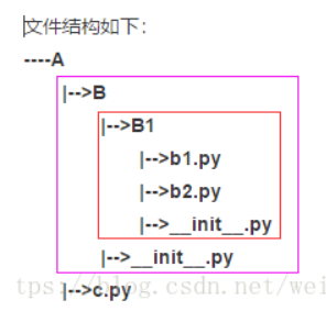 from B.B1 import b2#从B包中的子包B1中导入模块b2相对导入:只关心相对自己当前目录的模块位置就好。不能在包(package)的内部直接执行(会报错)。不管根节点在哪儿,包内的模块相对位置都是正确的。