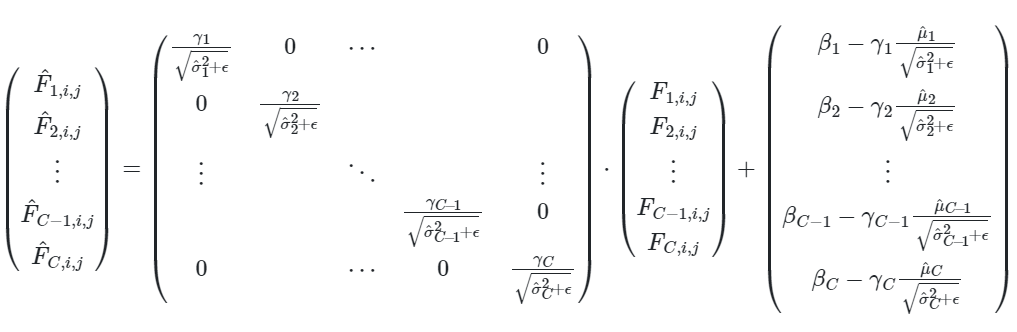 目前,batch normalization 主要应用于卷积神经网络对图像的处理。在该设置中,输入特征图的每个通道都有均值和方差估计、比例和转换参数。我们将这些表示为:对于通道c:,