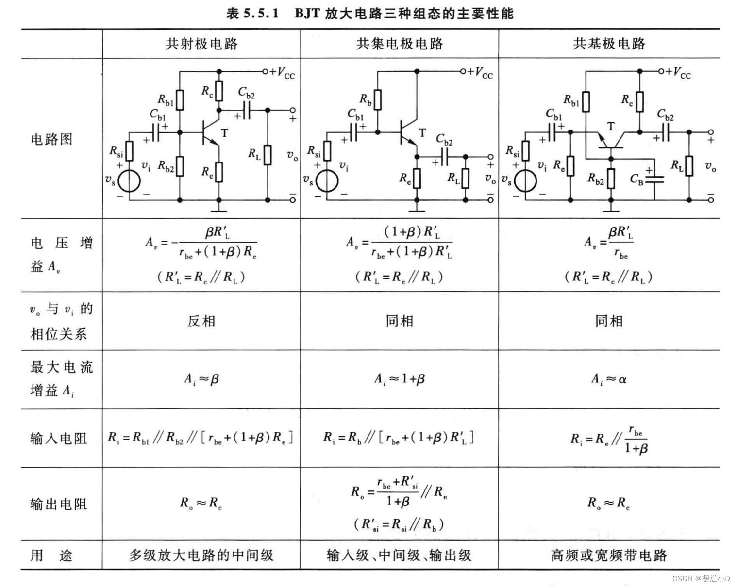 3.共基极放大电路主要用于高频放大器、高频振荡器、宽频带放大器