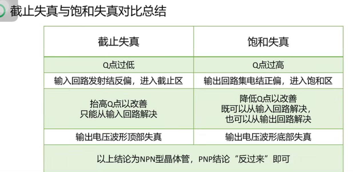 饱和失真:若偏置电阻Rb偏小,基极电流IBQ就较大,就会产生饱和失真