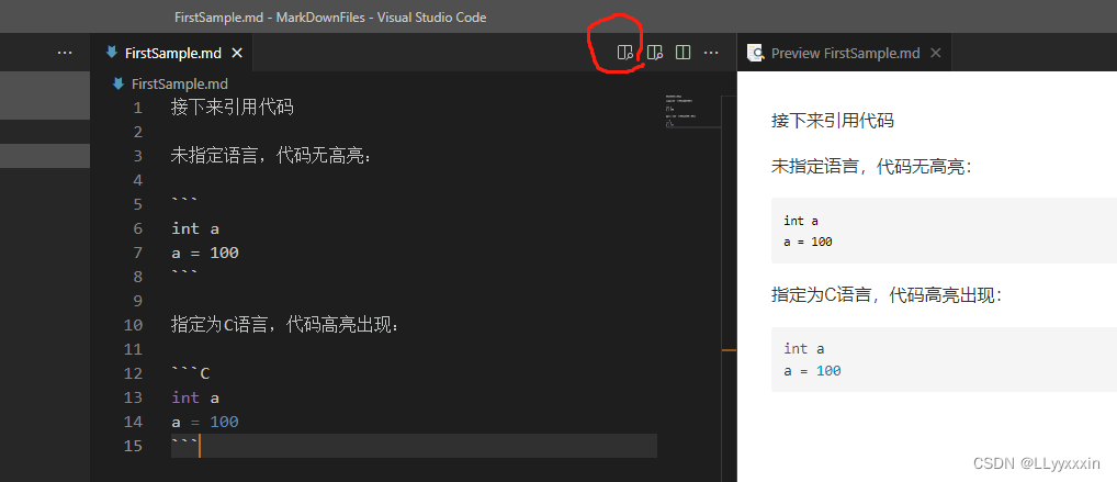 在左侧文件夹内创建新的文件并后缀命名为.md,并点击右上角预览按钮同步渲染文本效果