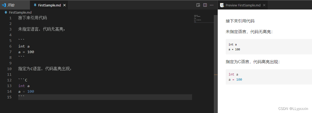在第一行"```"后输入所用语言名字可指定语言提供高亮,如: