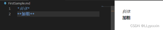 加粗:在文本两端各加2个星号”*“ 快捷键:ctrl + b