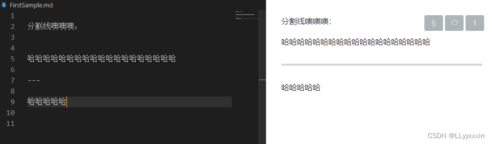 在所需添加分割线的文本下新起一行输入三个减号 "---"
