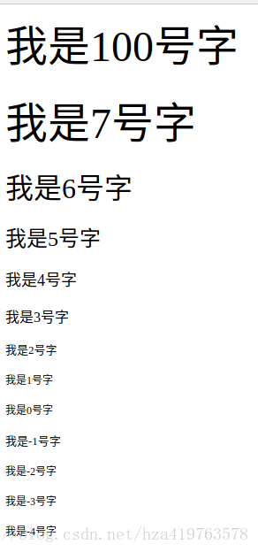 说明: size属性设置字体大小,值为7到1,依次减小.大于处理为7,小于1处理为1