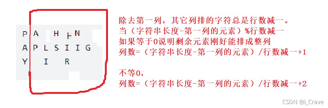 if((len-numRows)%(numRows-1)==0)//第一列全部都有字符,其它列总会有一个为空(或最上或最下)