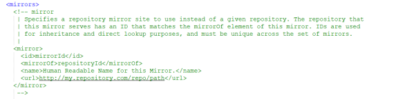 localRepository用于配置本地仓库,本地仓库其实起到了一个缓存的作用,它的默认地址是 C:\Users\用户名.m2。