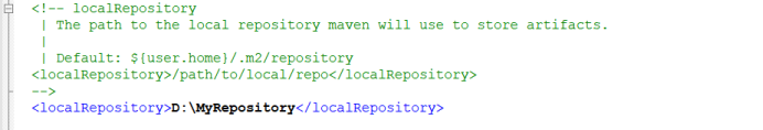 2.1、用编辑器打开setting.xml找到<localRepository>标签
