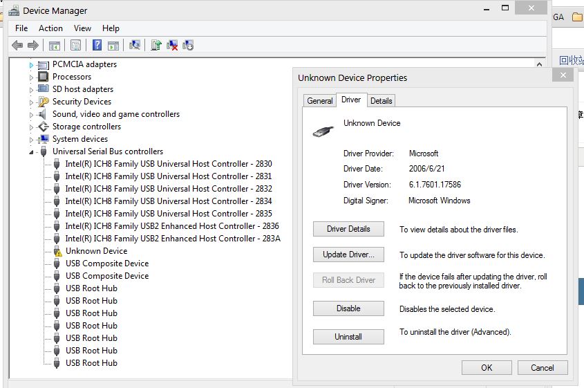 双击 不识别的设备 然后 选择驱动选项卡,再选更新驱动