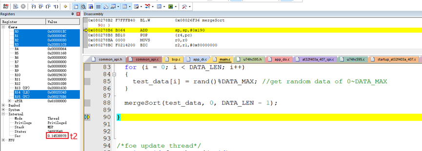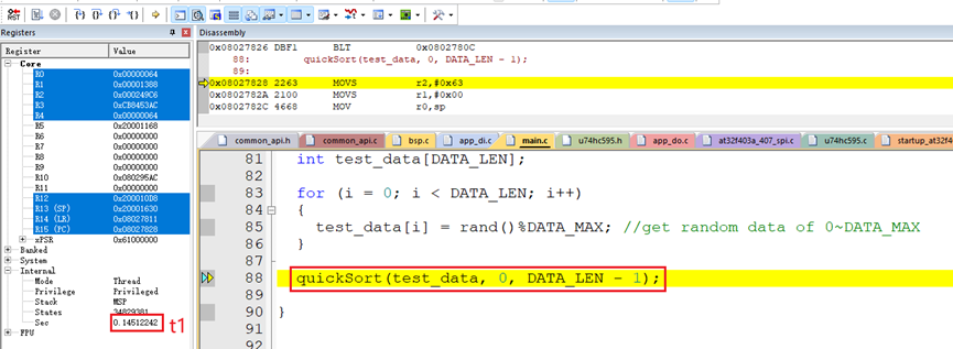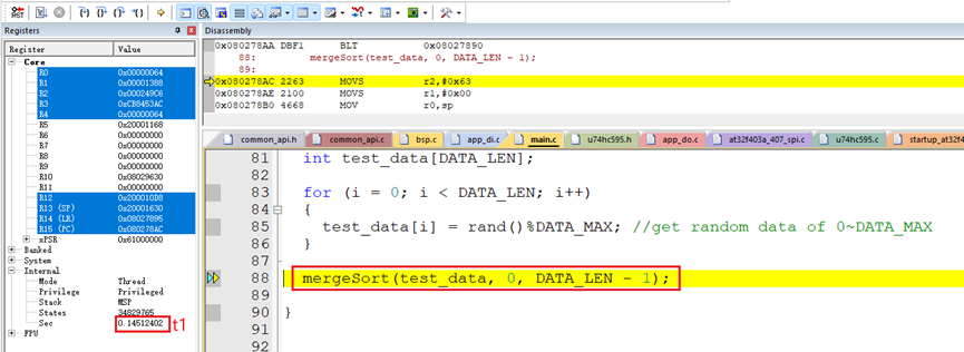 t = t2-t1 = 0.14519573秒 – 0.14512242秒 = 73.31微秒。