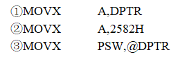 2)片外RAM或I/O端口与累加器A之间的数据传送,即MOVX指令。