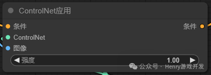 ControlNet应用则用于把正想提示词、预处理器、以及加载器进行统一应用的节点,相当于中间连接器