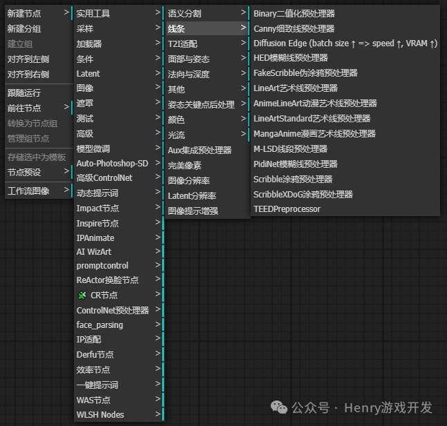 不同的预处理可以对生成的图像进行不同的控制,一般有风格约束、线条约束、姿态约束、景深控制等,不管是WebUI还是ComfyUI,都有强大ControlNet,这里不详细介绍ControlNet,主要讲下如何在ComfyUI中使用ControlNet,后续可能专门写一篇ControlNet的详细介绍