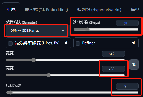 采样方法选"DPM++ SDE Karras"
