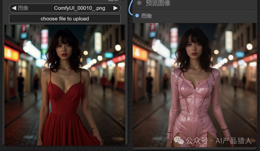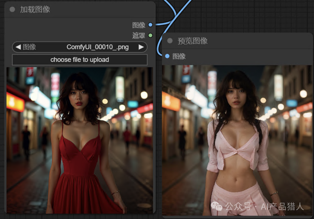好了,“一键换装”的工作流就搭建好了,我们来看看效果对比: