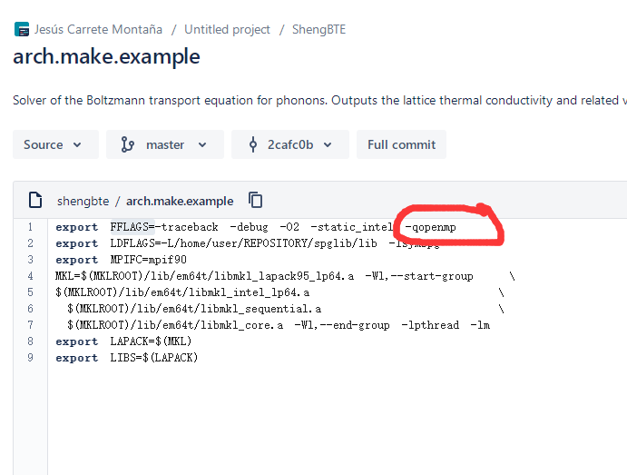 在arch.make.example文件中软件作者更新了一些参数,尤为重要的是在FFLAGS后添加了一个-qonemp,而参照我的教程的小伙伴不少将其去掉,