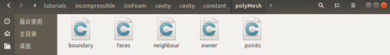 我们结合上一讲的案例来看,我们首先打开polyMesh文件夹,发现下面有一系列文件。分别为points,faces,owner,neighbor,boundary。