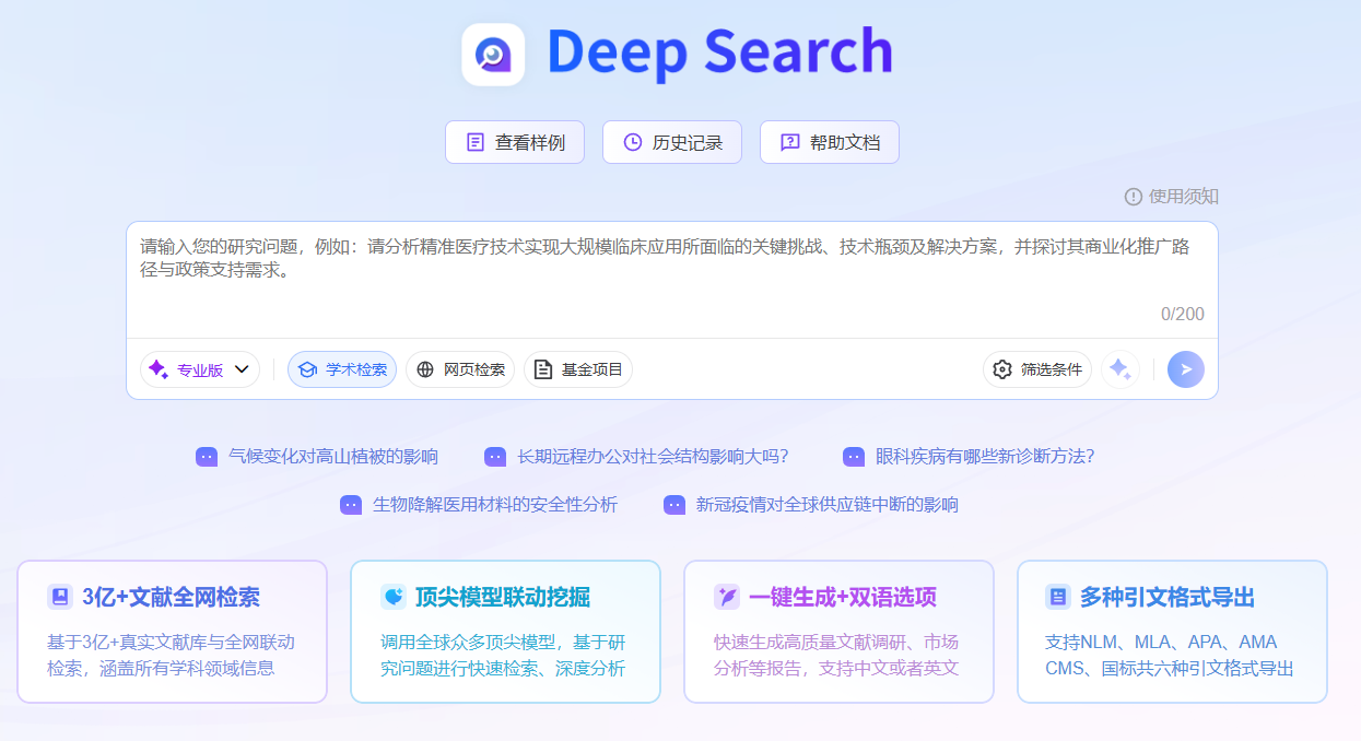 以Deep Search为例,它被许多资深用户私下称为“开题立项神器”。其核心价值就在于,它重新定义了“文献调研”的流程:从“人找信息”变为“信息找人并自动整合”。
