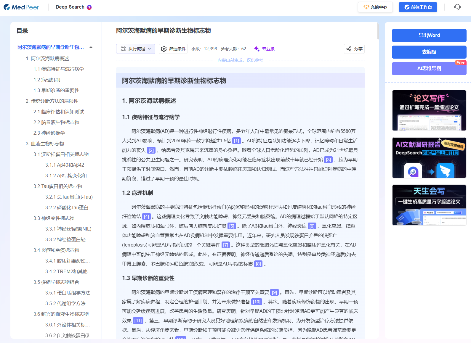 提出一个“真问题”:你不需要纠结于复杂的关键词组合。只需像向专家提问一样,输入一个相对宽泛但核心的研究性问题。例如:“阿尔茨海默病的早期诊断生物标志物。”
