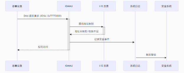 IOMMU->>+系统日志: 记录安全事件