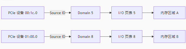 A[PCIe 设备 00:1c.0] -->|Source ID| B[Domain 5]