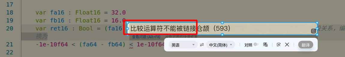 (fa64 - fb64 < 1e-10f64) && (fa64 - fb64 > -1e-10f64) // 这里即使去掉两边的括号也能正常运行