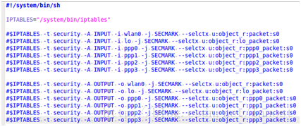 不过,从知识完整性角度看,还有对网络数据包打标签的工作,这也是SELinux新增的功能。不过,它涉及到与iptables相关的工作,所以笔者也不想过多讨论。在SEAndroid中,selinux-network.sh脚本就是来干这个事情的,其内容如图4所示: