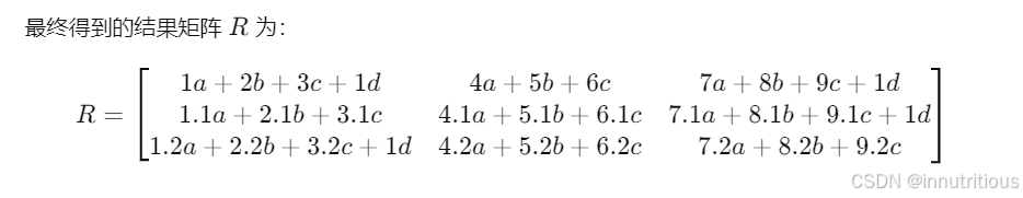 现在有一个向量(a,b,c),这个向量与前面这个张量相乘,请给出结果
