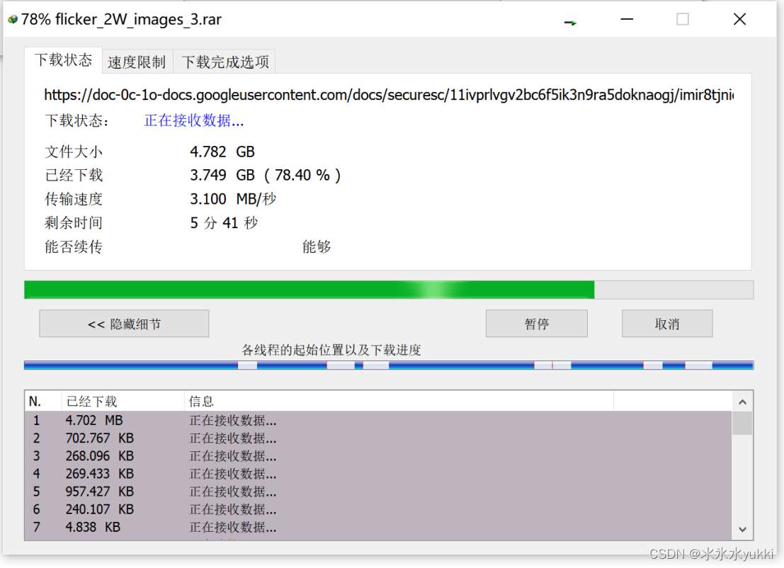 使用IDM继续下载——用IDM下载和直接下载主要区别就是当数据集下载中断时,IDM能够继续接上下载完的部分继续下载,从而不用从头开始下载,节省我们的时间。