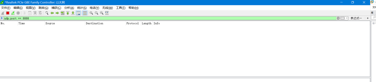 - udp.dstport == 8888 显示 udp ⽬的端⼝号为 8888 的数据包