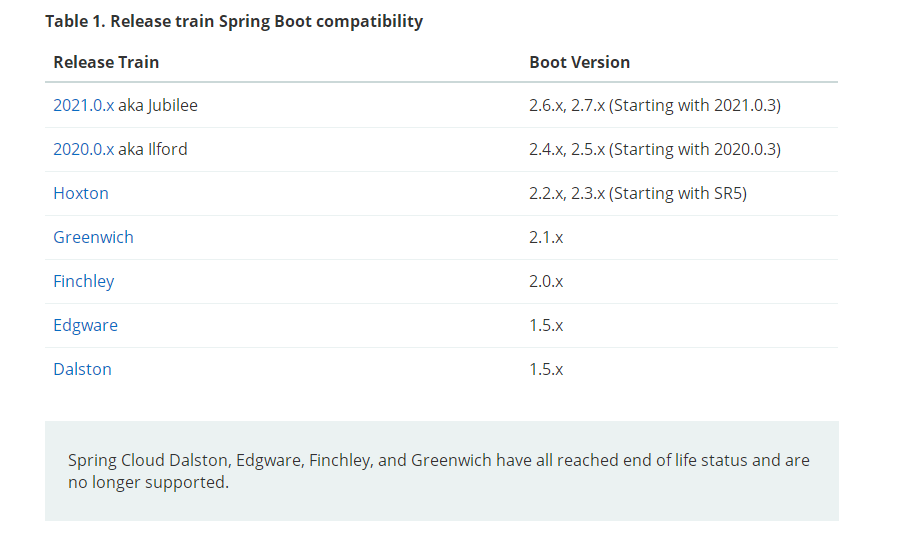 以上的图是SpringCloud官网上的SpringCloud的release Map图; 最新的SpringCloud的版本是2021.0.X, 注意第二列,由于SpringCloud是基于SpingBoot框架而进行实现和定义接口的,所以需要严格的对应SpringCloud和SpringBoot的版本; 如上图所示, 我们的SpringBoot可以选择使用2.6.X系列或者2.7.X系列, 笔者建议先使用2.6.X系列