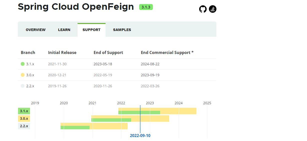 下图是SpringCloud OpenFeign的版本蓝图, 笔者建议使用3.1.X版本,笔者自己使用的是3.1.1版本