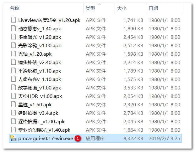 要在索尼微单上安装应用程序,一般要在相机上通过访问其应用商店来实现,但这很麻烦(具体原因,用过的朋友应该知道),于是有人制作了可以通过电脑来进行安装的软件(上图①处)。如果还能找到要安装的应用程序(上图中的那些 apk 文件),就可以进行下一步操作了。
