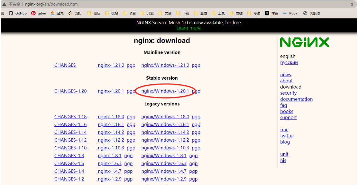 本小节以Window下的安装及配置为例进行实践。(此部分内容了解即可,很少在window平台部署nginx)