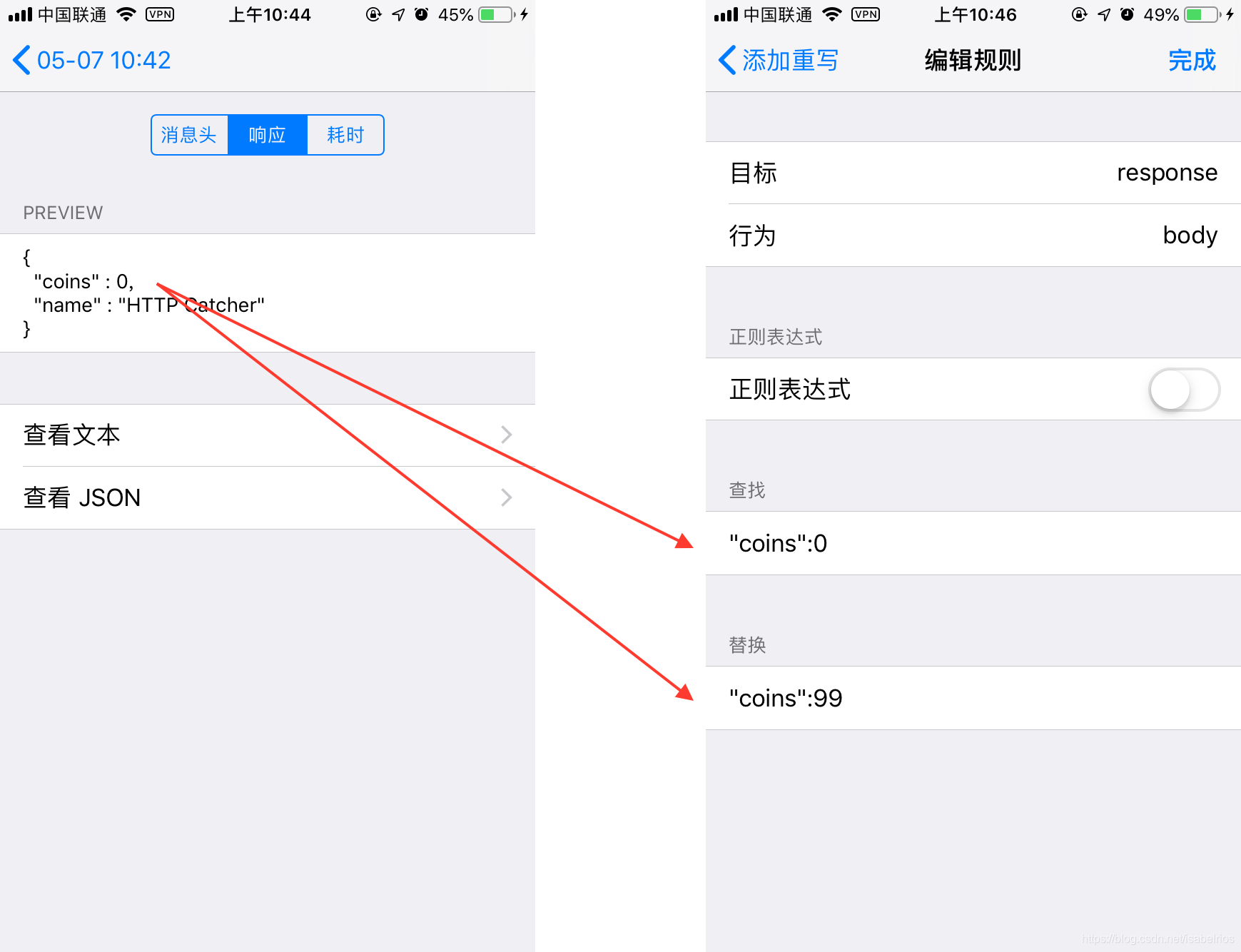 上图是将 JSON 字段 coins 的值改从 0 改为 99,这里查找填入 "``coins``"``:0,替换填入 "``coins``"``:99,在复制的过程中需要去掉中间的空格。