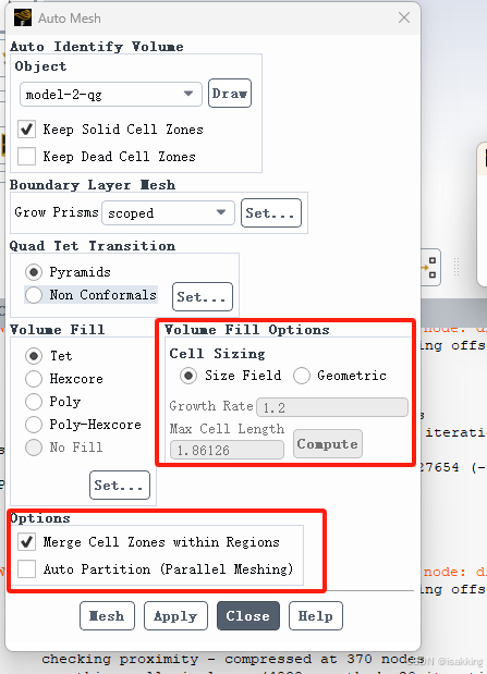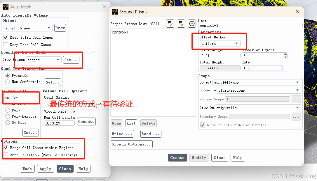 在Cell zone-Auto Mesh里面画体网格和边界层,边界层的高度的确定,为了加密